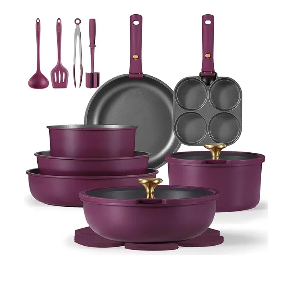 Premium non stick cookware ensures even heating, easy food release, less oil usage, quick cleaning, durable coating.