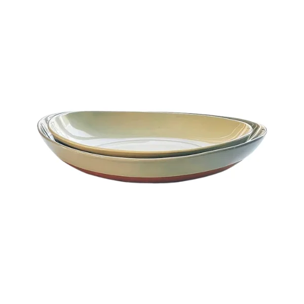 The MORA Ceramic Oval Serving Bowl Set includes two bowls designed for serving a variety of foods during everyday meals and gatherings. The oval shape and slightly asymmetrical design provide ample space for presenting salads, fruits, side dishes, and main courses.